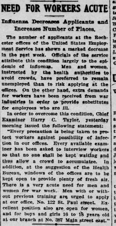 1918-10-18 need for workers Democrat_and_Chronicle_Fri__Oct_18__1918_ Published on April 30, 2020 in October 18th, 1918 Rochester and the Influenza pandemicFull resolution (4003 × 7799) ← Previous