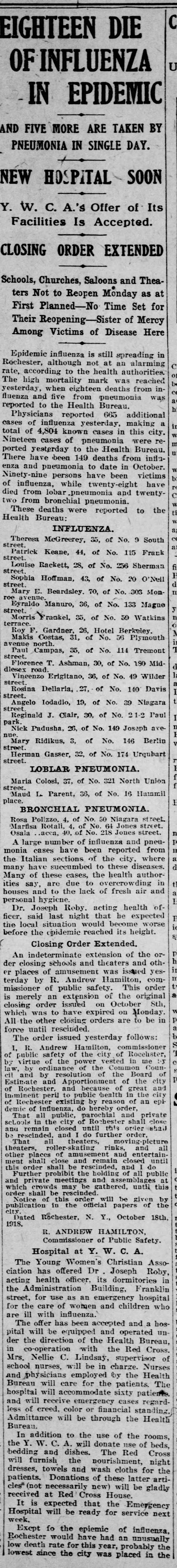 1918-10-19 Rochester part 1 Democrat_and_Chronicle_Sat__Oct_19__1918_ Published on April 30, 2020 in October 19th, 1918 Rochester and the Influenza pandemicFull resolution (874 × 7755) Next →