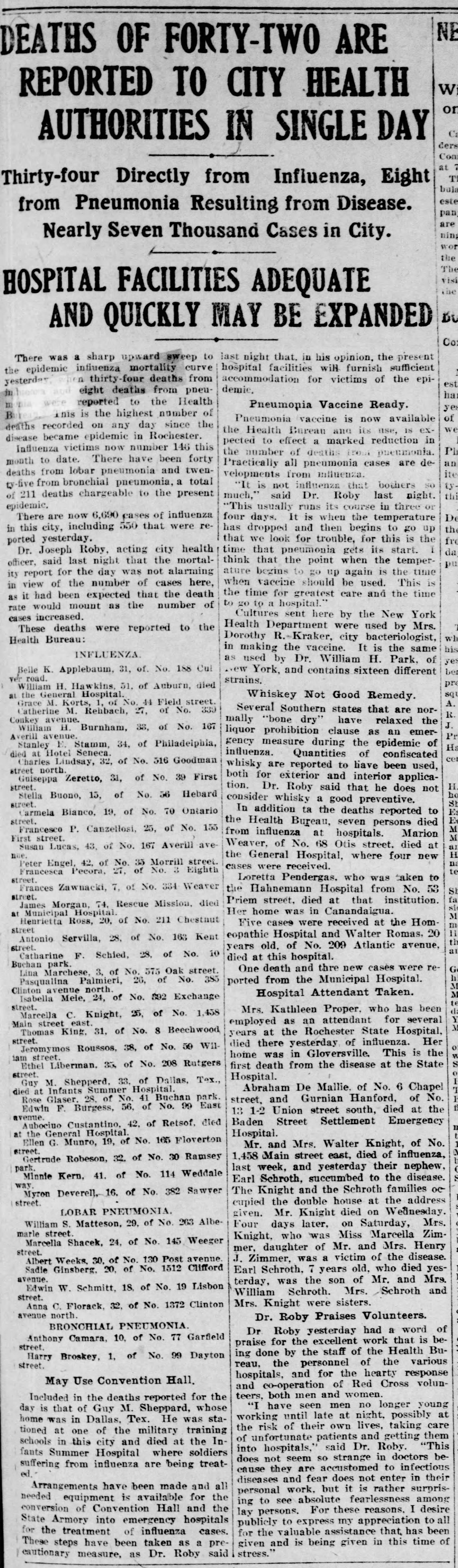 1918-10-22 Rochester fatalities Democrat_and_Chronicle_Tue__Oct_22__1918_ Published on May 3, 2020 in October 22nd, 1918 Rochester and the Influenza pandemicFull resolution (2283 × 7804) ← Previous Next →